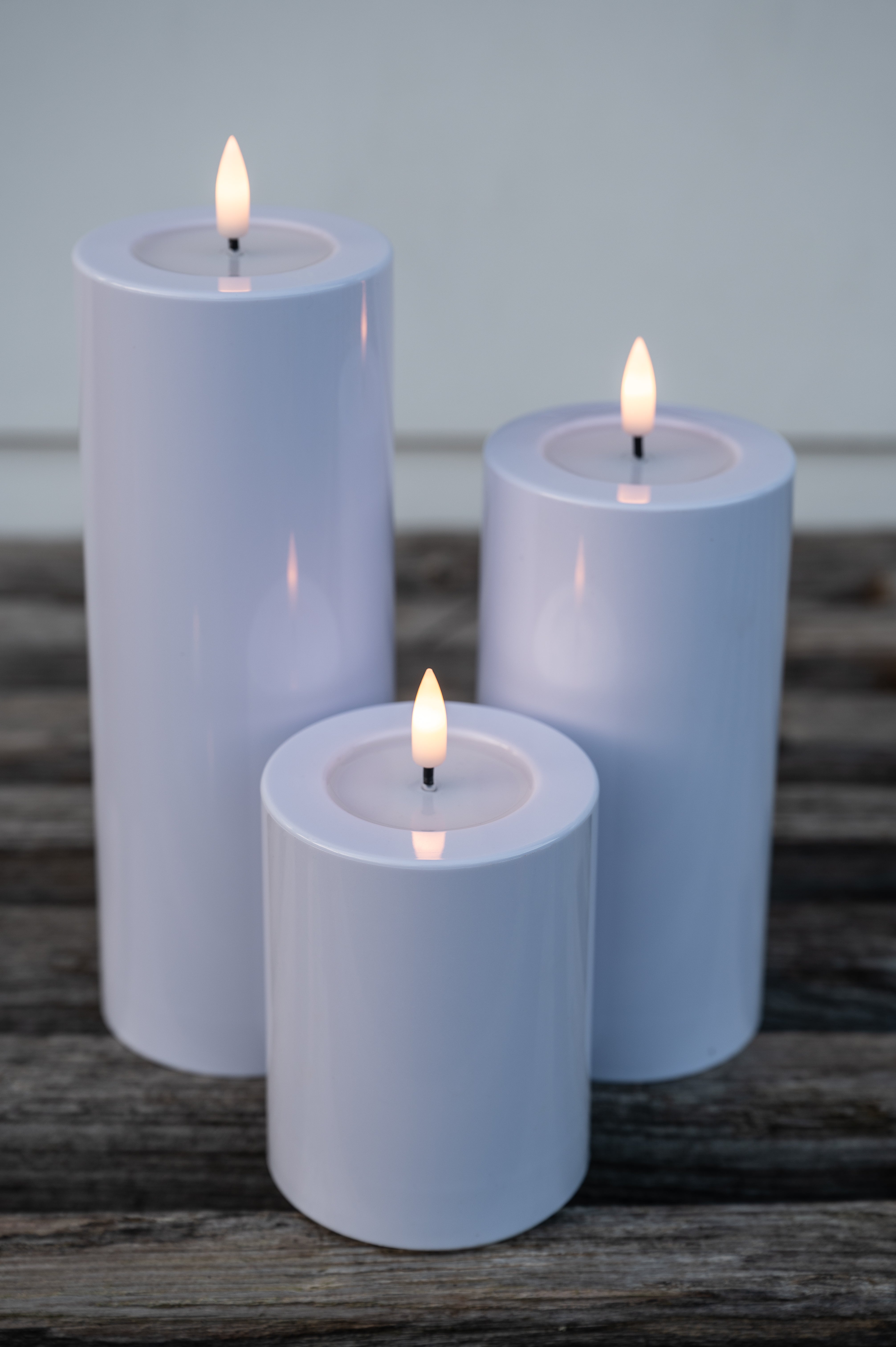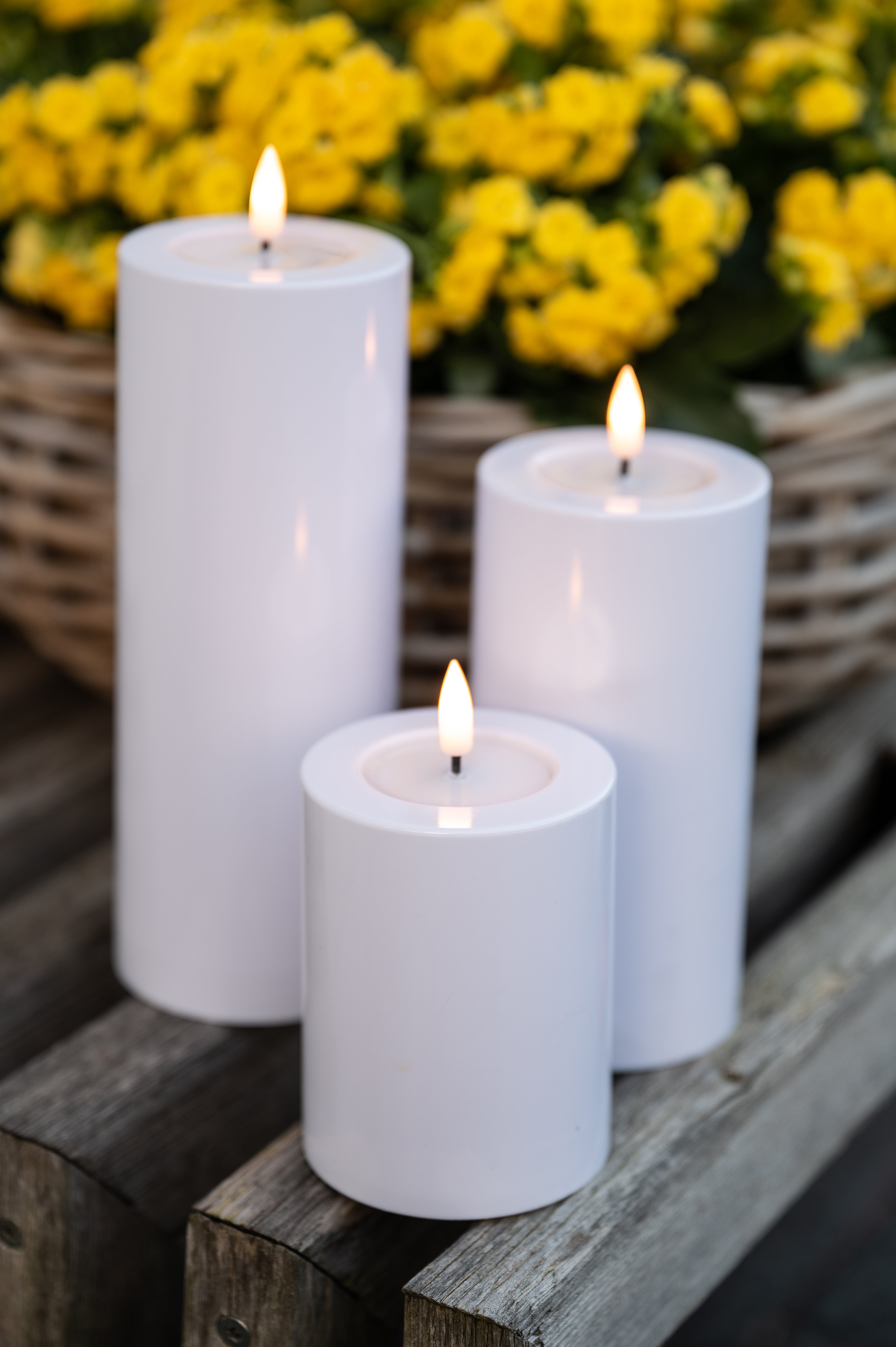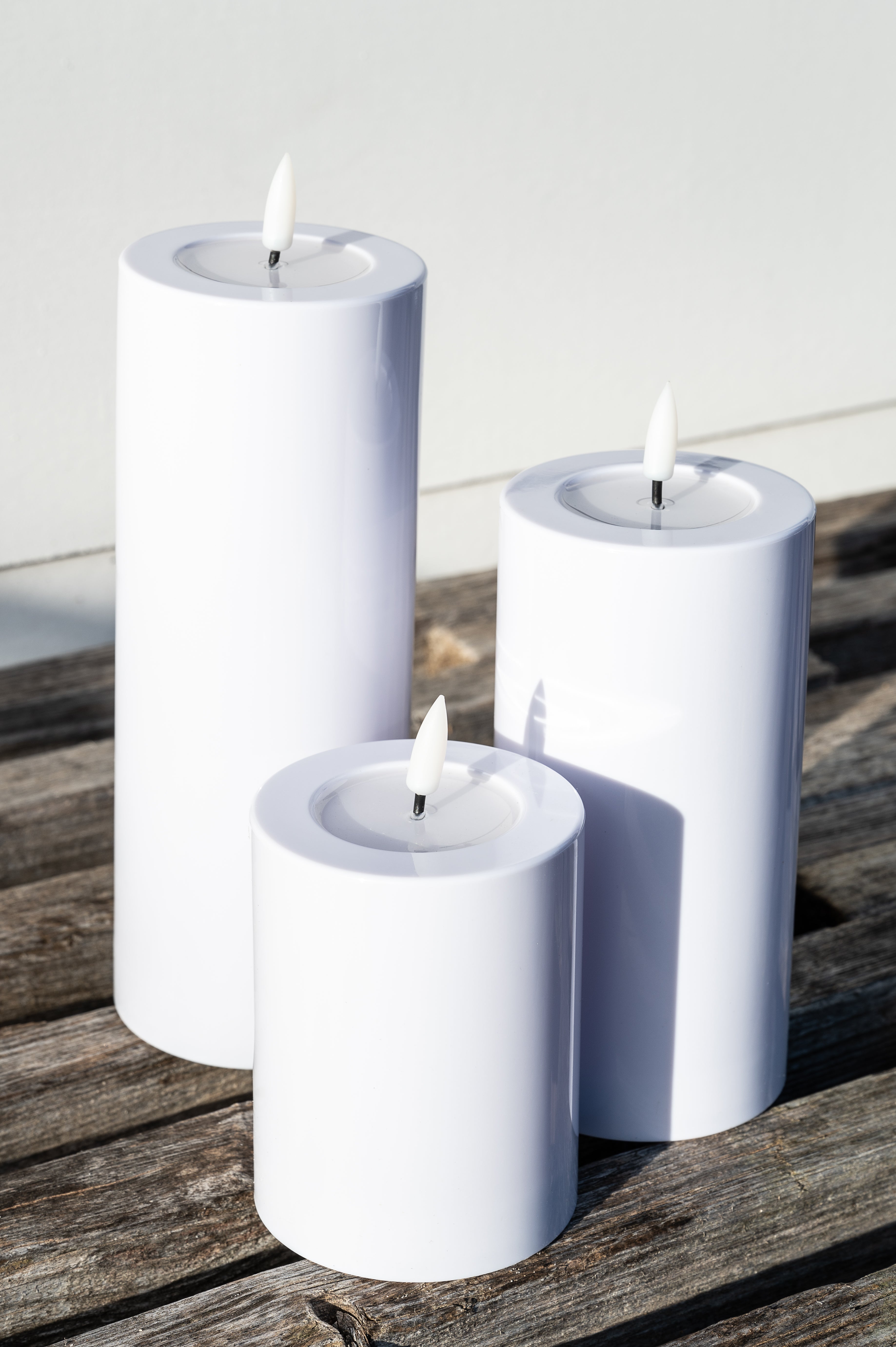 De hvide Luca LED-bloklys med batteri er beregnet til udendørs brug, men du kan selvfølgelig også bruge dem indendørs.